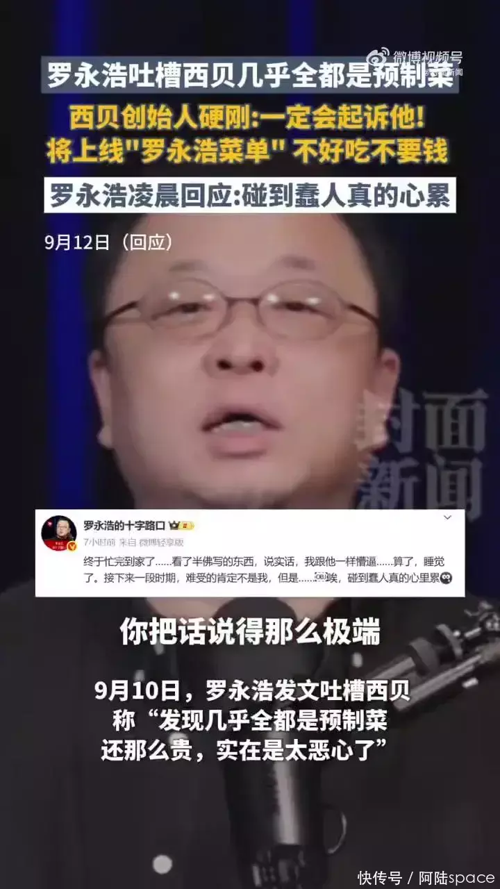 ?? ? 这段时间关于“预制菜”的话题突然又火了,连锁餐饮集团“西贝”由于罗永浩的公开吐槽,也深陷舆论风波之中。“几乎全都是预制菜,还那么贵”,在我看来这样的言论完全就是普通人都会对刚吃了好的一顿饭品质好坏的直接表达,本身可能并没什么恶意。有趣的是明明很多时候好像真的只是给冷菜加加热而已,这个餐饮品牌的老板竟然还表示会走法律程序起诉,呵呵,真就有点恬不知耻了,典型的“做得,说不得”。