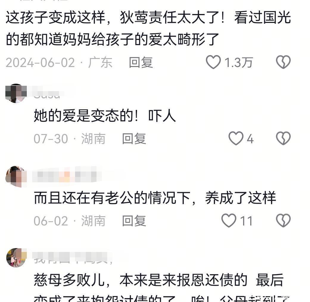 不少網(wǎng)友認(rèn)為孫安佐變成這樣,狄鶯有很大的責(zé)任,她給予孩子的愛太窒息了。真正的愛,應(yīng)該是尊重孩子作為獨(dú)立個(gè)體的權(quán)利。而狄鶯的“愛”,實(shí)際上是一種極端的自私。她不是在愛兒子,而是在滿足自己的控制欲。她把兒子當(dāng)成自己的私人物品,而不是另一個(gè)人。