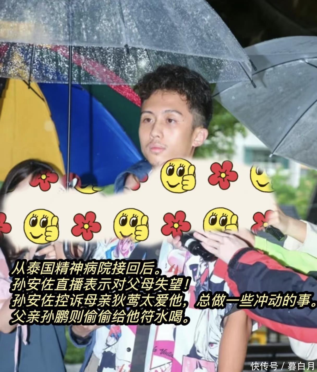 2024年,孫安佐在泰國(guó)因?yàn)樗疥J民宅而被警方控制,今年6月他又被媒體拍到一個(gè)人在臺(tái)北的街頭精神恍惚。孫安佐在接受采訪的時(shí)候說(shuō),父母的愛讓他壓力很大,他曾經(jīng)多次和父母說(shuō)不要為他做太多事,但是父母總是以愛他為借口去管他。他直言對(duì)媽媽很失望,但是畢竟是媽媽還是愛她的。
