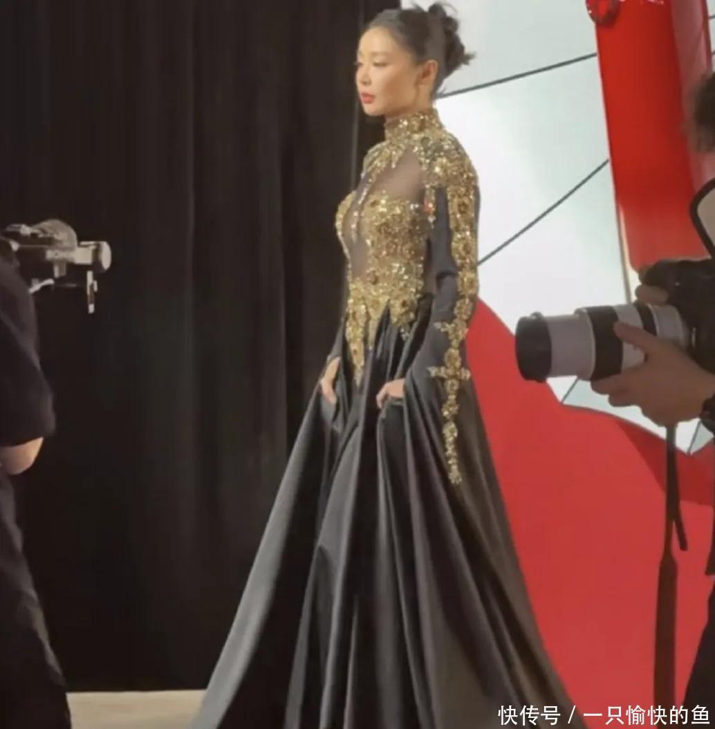 上半身的描金绣凤,却让人觉得比较俗气,肩部显得宽了一点,没有突出高叶的高身材。但一旦穿搭比较休闲居家,她的那一种高级感就出来了,也是很奇怪的。