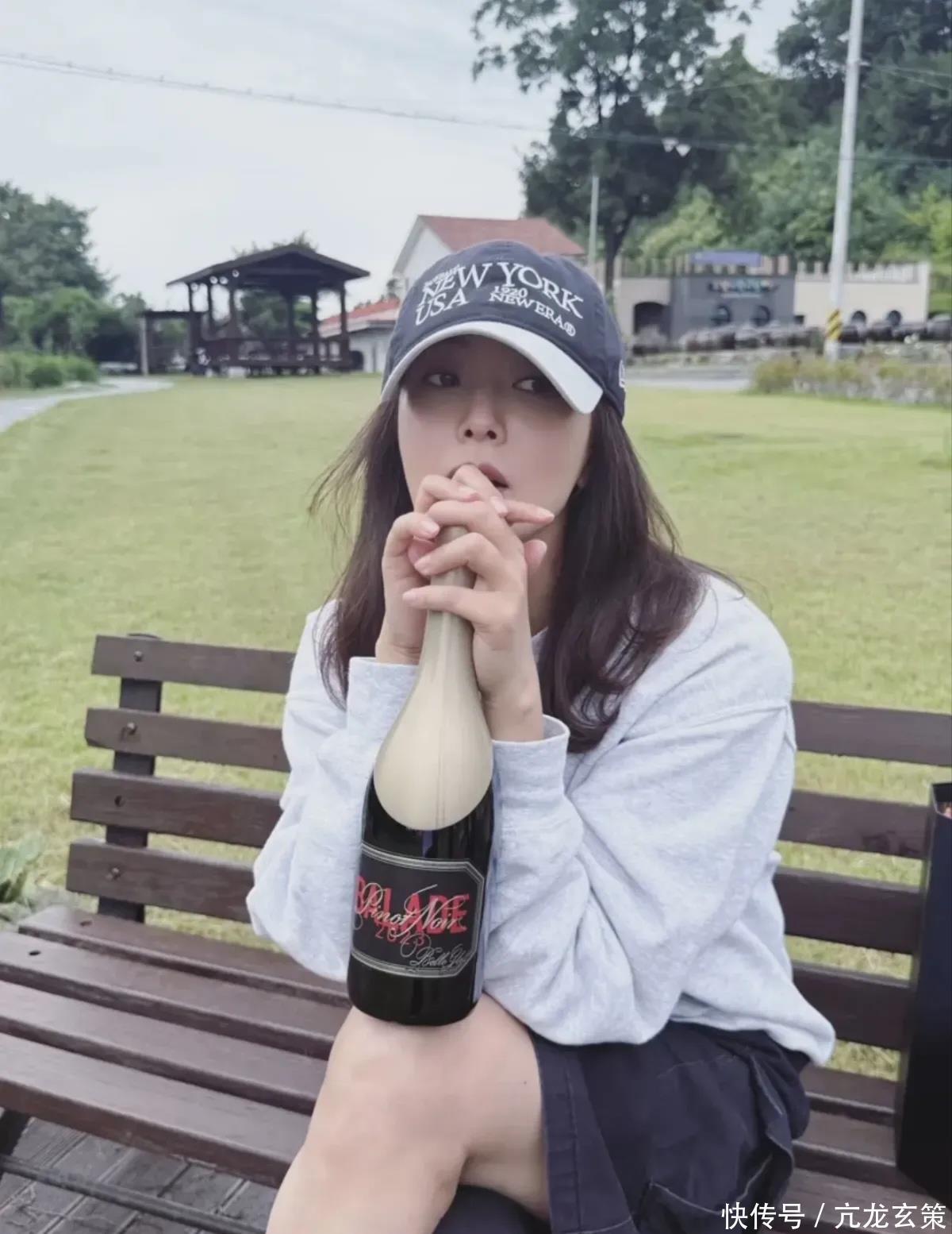 金喜善一身休闲打扮出镜,头戴棒球帽身穿运动休闲服,手里拿着一瓶红酒,一副十分享受的感觉。画面中的她十分随性洒脱,好似一个少女一般,如果不说谁能想到她已岁了?