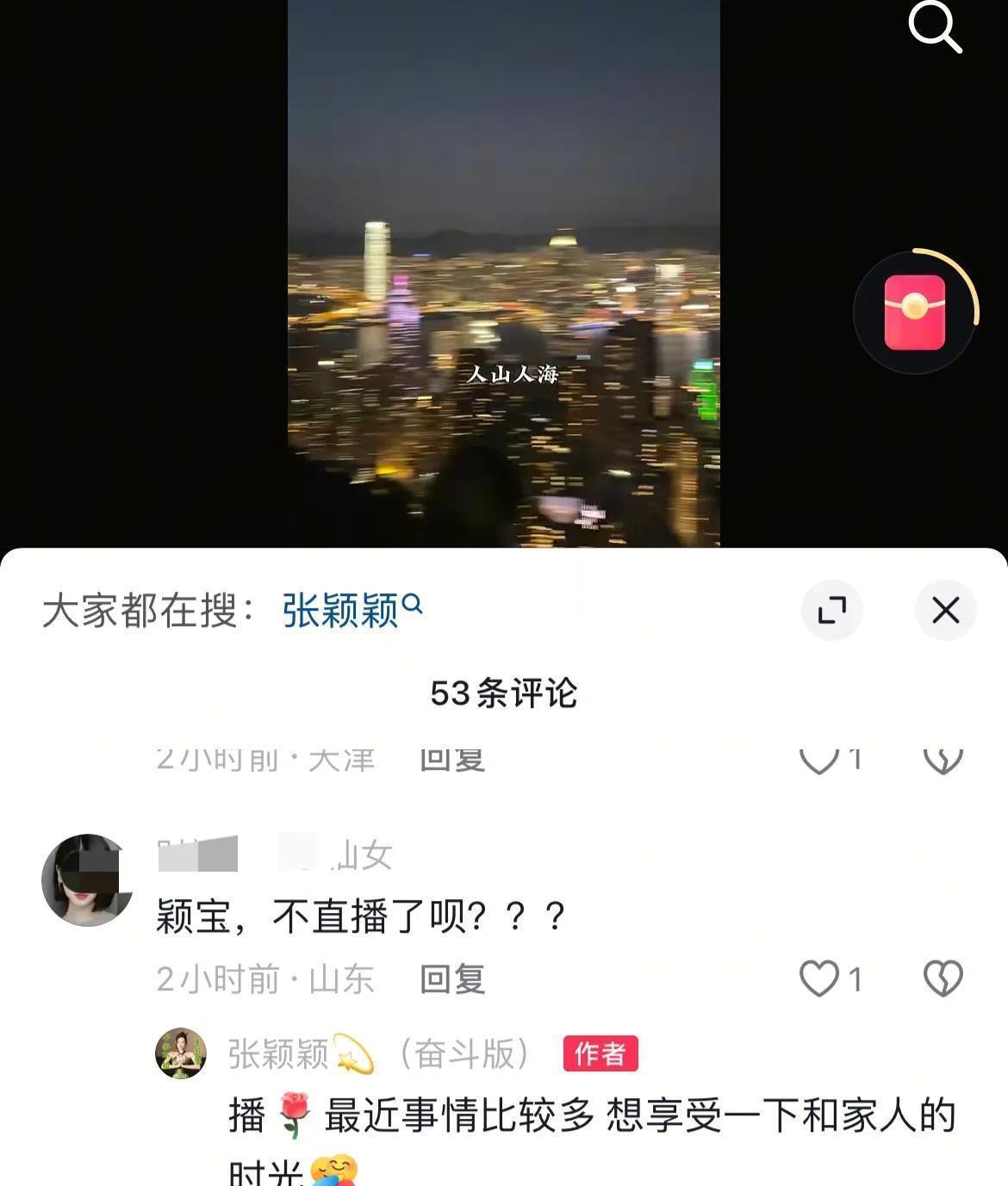 有网友问她:不播了呗?岂料张颖颖回复:播,最近事情比较多,想享受一下和家人的时光!