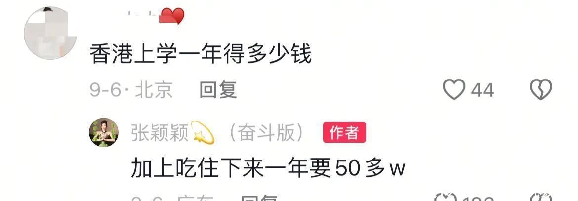 张颖颖妹妹在香港读书一年的费用吃住都包括多万,都是姐姐给支付。