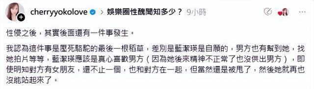 ?????? 除了這件事之外,CJyang還聲稱,藍(lán)潔瑛后來(lái)又愛(ài)上了一個(gè)男子,對(duì)方在圈內(nèi)也有名氣,對(duì)藍(lán)潔瑛提供了一些幫助。?????? 也許藍(lán)潔瑛是真的喜歡對(duì)方,所以自愿和他相好,只是他卻非?;ㄐ?,談了很多女友,最后還把藍(lán)潔瑛給甩了。