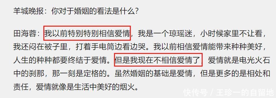 田海蓉曾說她小時候是瓊瑤迷,家人不讓她看瓊瑤的書,她就偷偷晚上躲在被子里看,一邊打手電筒看一邊哭。