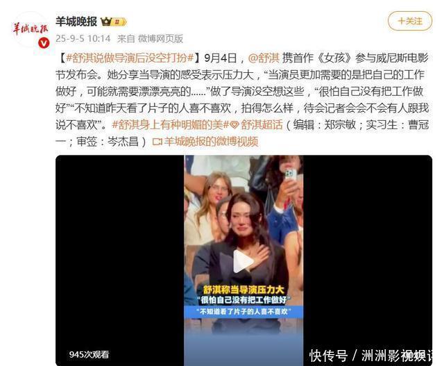 ?????? 然而,光鮮背后卻是首次擔(dān)任導(dǎo)演的巨大壓力。在9月4日的威尼斯電影節(jié)發(fā)布會上,舒淇攜首部導(dǎo)演作品《女孩》坦誠分享心境:“當(dāng)了導(dǎo)演之后,我今天早上起來就因為晚上要首映了,就完全沒辦法去在乎今天的妝怎么樣、頭發(fā)怎么樣、要穿什么樣的衣服?!?????? 她一口氣道出了連日來的焦慮:“我一直都在想,不知道昨天看了片子的人喜不喜歡啊,今天會怎么樣啊,待會兒的記者會會不會有人跟我說不喜歡這個片子……”這些莫名的壓力讓她瞬間回到了電影開拍前的狀態(tài)。