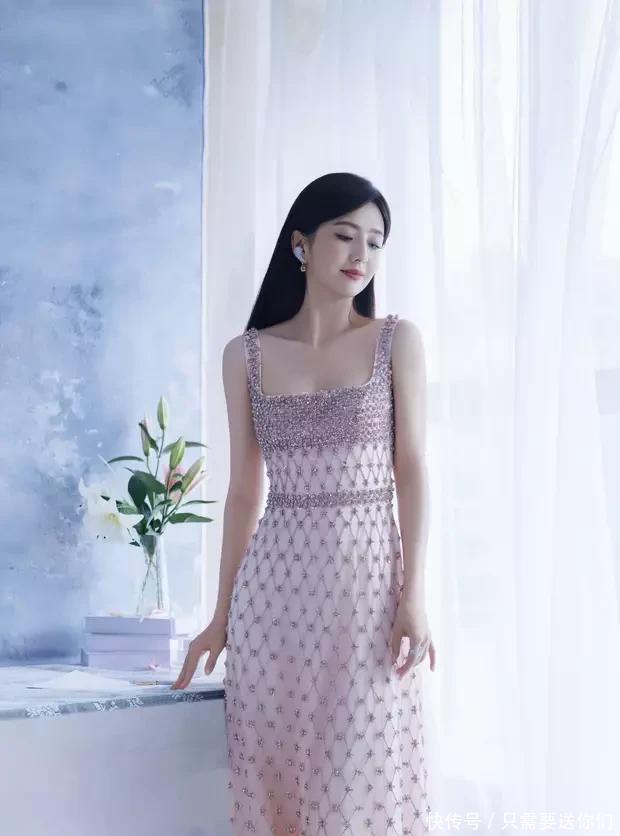 粉色本就溫柔浪漫,佟麗婭這條裙子選用的粉色更是恰到好處,將她的肌膚襯得格外白皙。裙身鑲嵌的鉆石,隨著她的一舉一動(dòng)閃爍光芒,仿佛是把星河穿在了身上,奢華感十足。吊帶的設(shè)計(jì)完美展現(xiàn)出她線條優(yōu)美的肩頸與精致的鎖骨,舉手投足間盡顯優(yōu)雅氣質(zhì)。