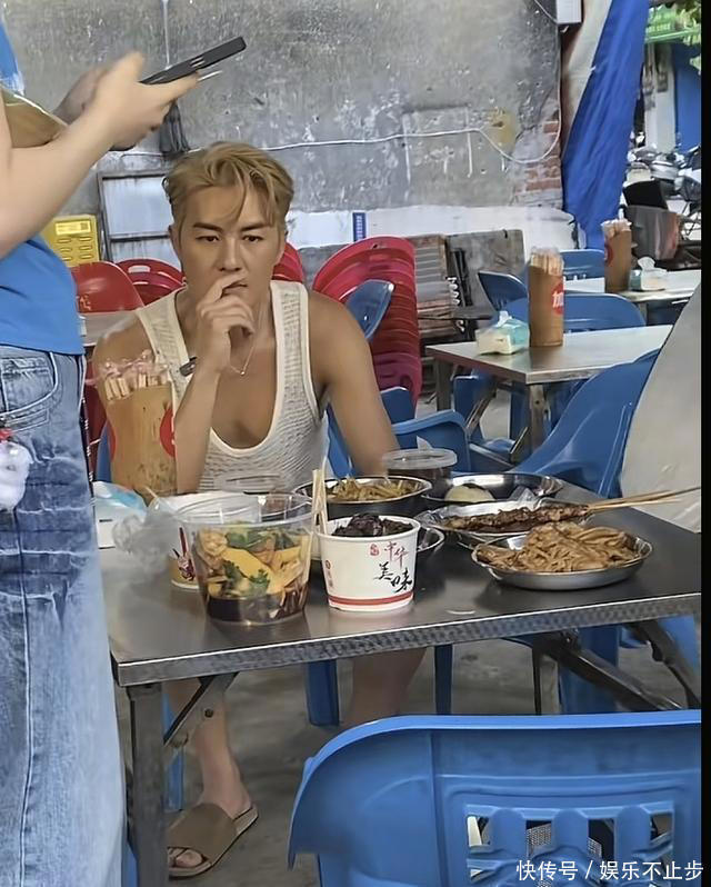 曾与赌王女儿传绯闻,吴克群如今广西街头用餐,穿背心拖鞋自在亮相