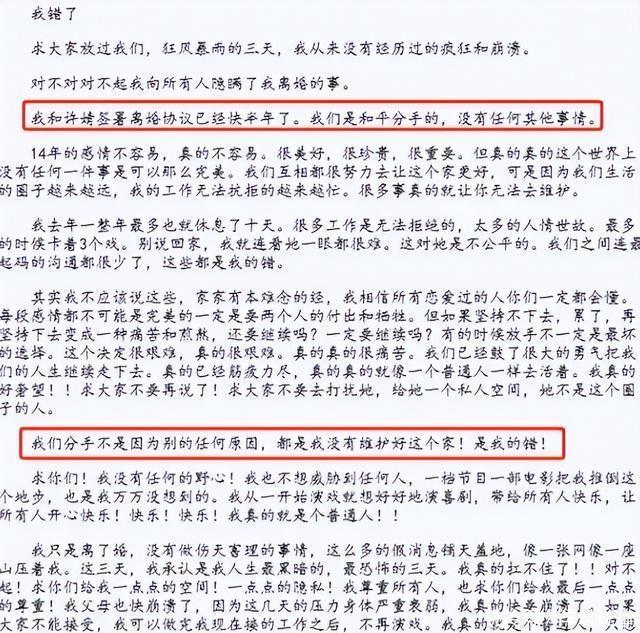 ?????? 在一顿狂轰滥炸下的他不得已站了出来,发表了长篇大作,解释早在半年前的时候就早早和前妻签署了离婚协议。?????? 但这更让网友炸锅了,你早在半年前就和平分手了,却在这种时候发布了一本关于爱情的书,这不是在欺骗大众吗?