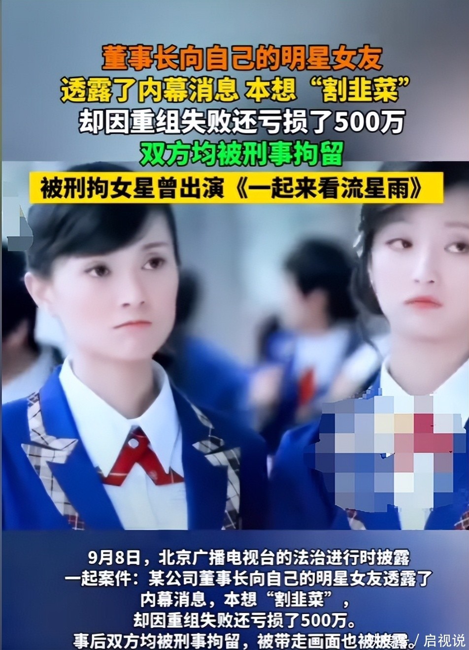 突发,37岁女演员被刑拘,岁董事长男友欲割韭菜亏万!