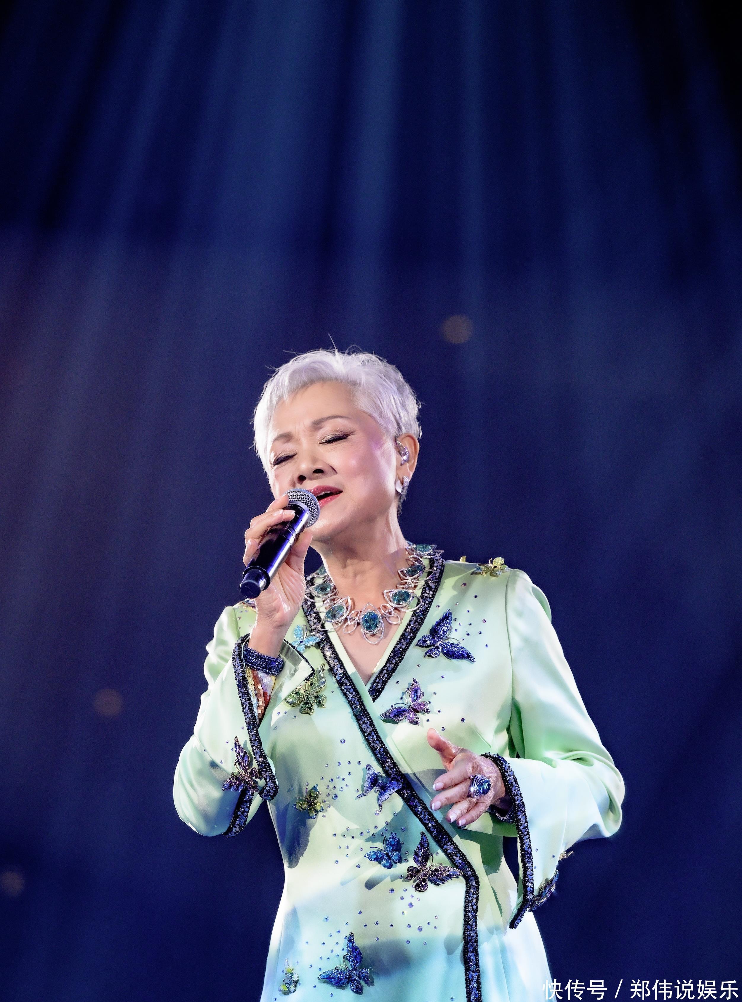 臺(tái)上的葉麗儀化著精致的妝容,一頭銀發(fā)格外的耀眼,雖然已經(jīng)70多歲了,但她依然寶刀未老。