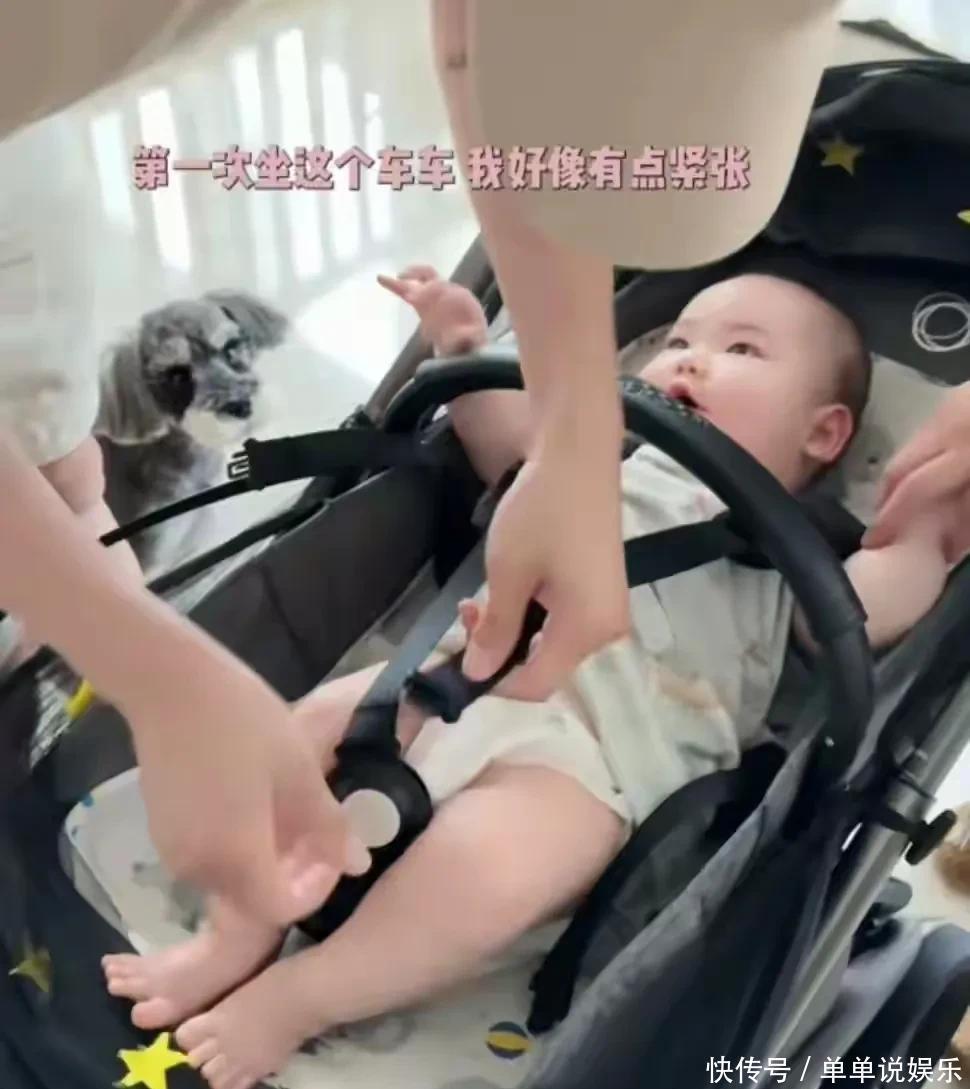 婴儿车是孩子出生前就准备好的,直到这天才派上用场。Dylan躺进车里,眼神充满好奇,小拳头紧握,显得紧张。他的体格壮实,小车几乎装不下,脚丫已经顶到边缘。张檬细心铺好凉垫,系好安全带,Dylan胖乎乎的小腿软萌可爱,皮肤白得发亮,大腮帮子透着喜庆。