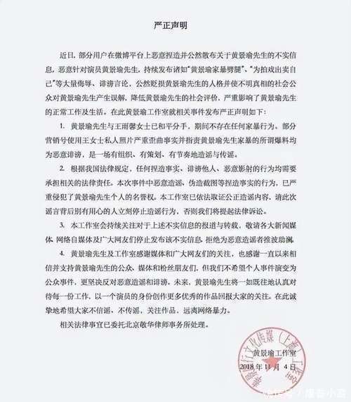 戲劇性的是,就在同一天,王雨馨也發(fā)文澄清,稱(chēng)關(guān)于黃景瑜的言論皆為不實(shí)造謠,并強(qiáng)調(diào)自己的家人和助理從未發(fā)聲討伐過(guò)黃景瑜。她甚至表示,自己與黃景瑜依舊是朋友,勝似家人,兩人是好聚好散,和平分開(kāi)。至此,眾人皆以為這場(chǎng)鬧劇終于可以落下帷幕。