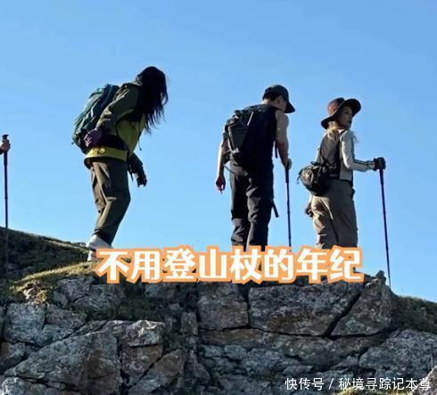 ?????? 韦姐穿着一件黄绿色相间的冲锋衣,搭配了一条卡其色的运动裤,?????? 戴着紫色的手套,头上还戴着一条头巾,非常适合户外运动的一套穿搭。?????? 全程步伐稳健不需要拐杖帮助,这么好的体力让同行的人都赞叹。
