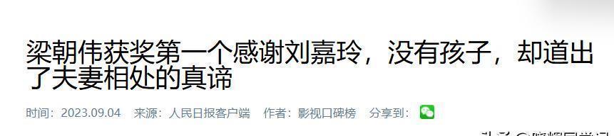 人民日报(梁朝伟获奖第一个感谢刘嘉玲,没有孩子,却道出了夫妻相处的真谛 2023.09.04)